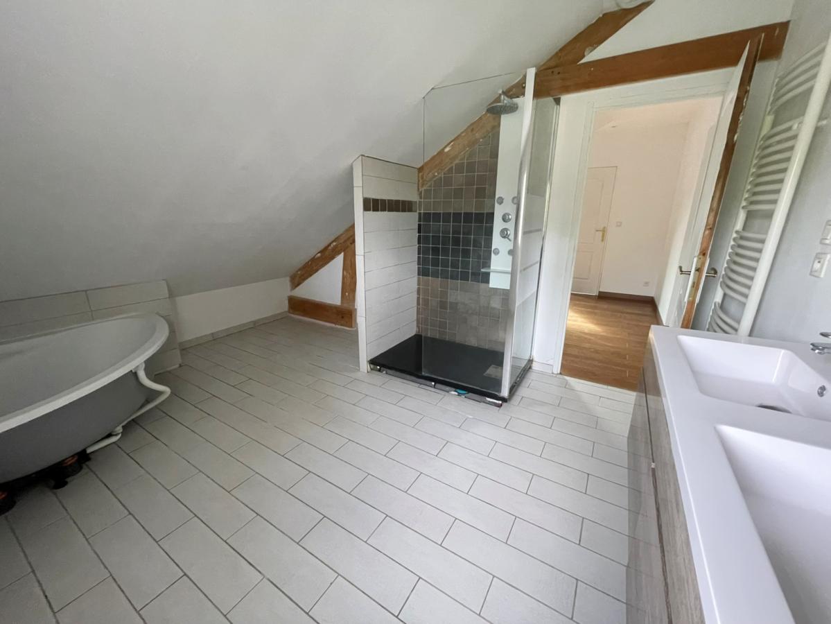 1er avec très beau parquet : mezzanine desservant 3 grandes chambres, salle de bains à finir avec baignoire – douche – meuble 2 vasques, WC.