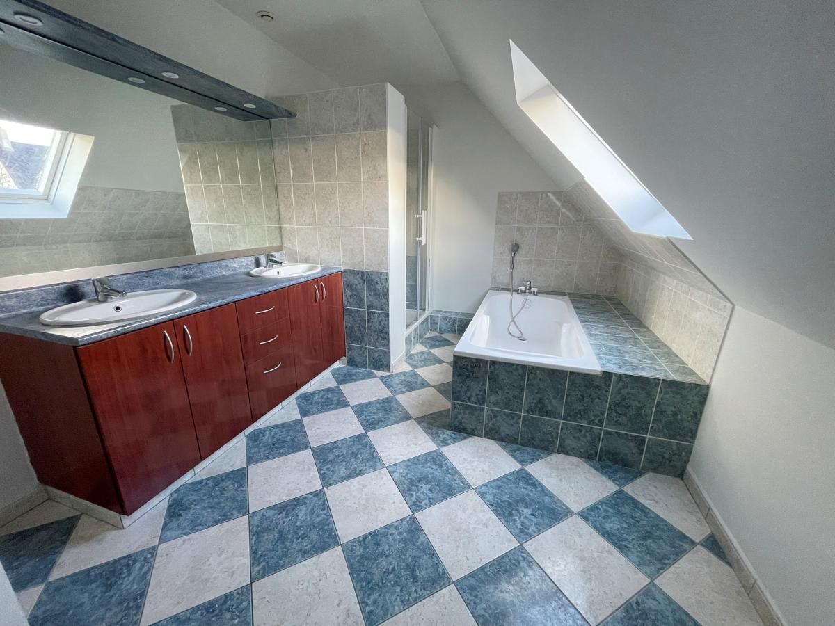 1er : palier desservant 3 grandes chambres, salle de bains complète avec baignoire et douche, WC.