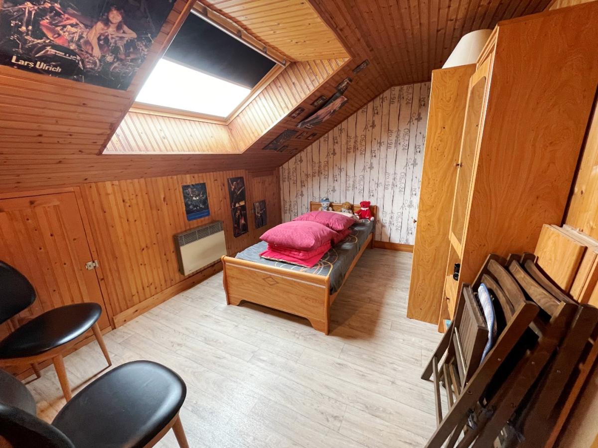 1er mansardé (au-dessus du garage) : dégagement, 2 chambres mansardées avec rangements, WC avec lavabo.